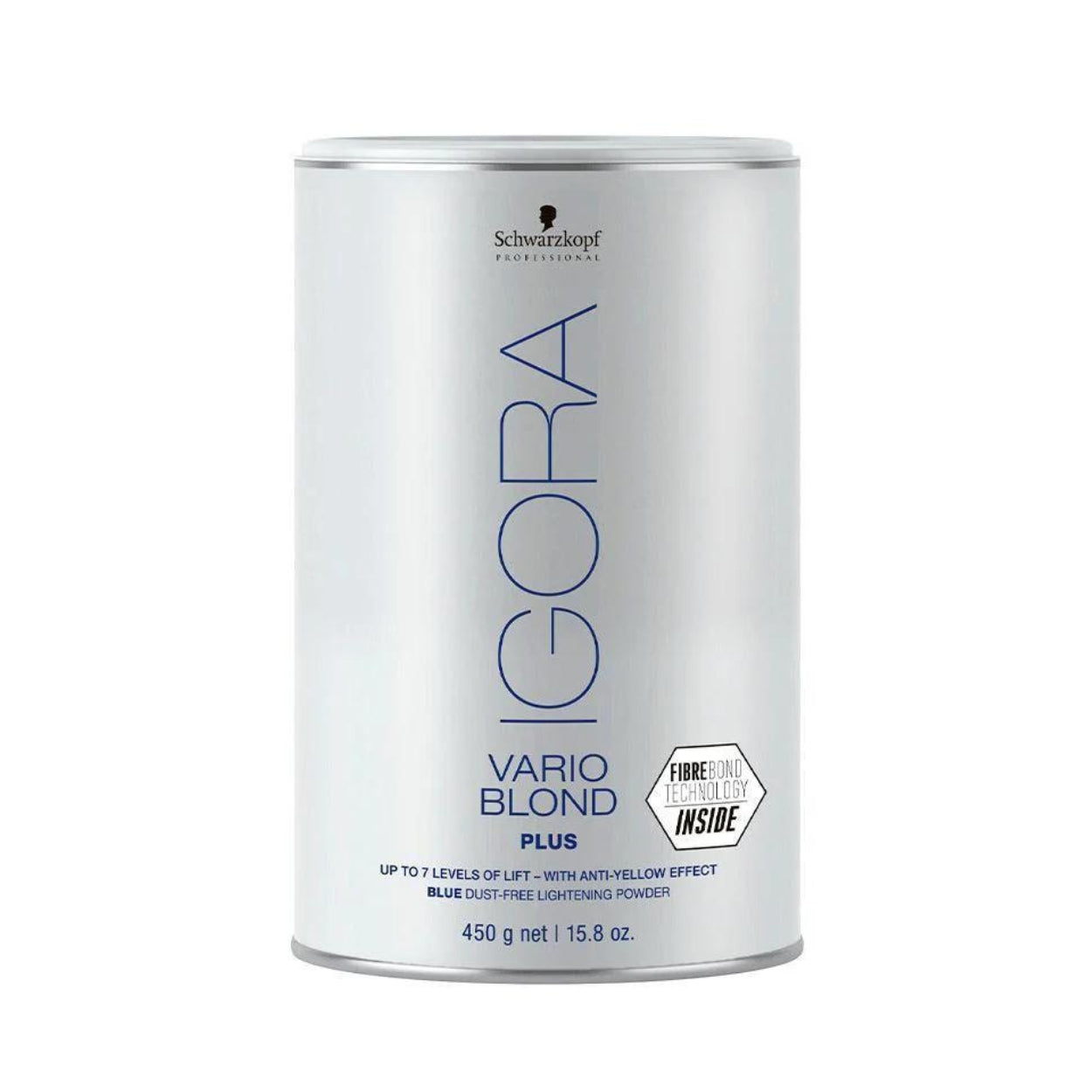 IGORA VARIO BLOND PLUS, que aclara hasta 7 tonos con una neutralización precisa, es una decoloración en polvo de alto rendimiento que contiene la Tecnología FibreBond integrada. Esto refuerza los puentes dentro de la fibra capilar para reducir la rotura durante y después del proceso. ¡No es necesario añadir un aditivo bonding! Usar IGORA VARIO BLOND con la Loción Activadora a Base de Aceite de IGORA ROYAL (3%, 6% o 9%*).